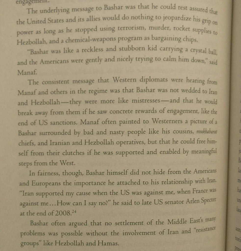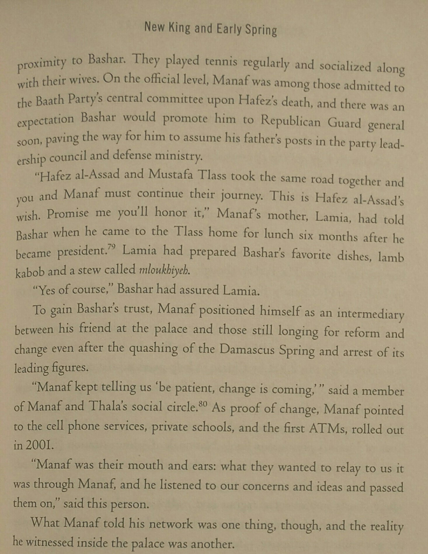 The book also gives a sense of how much Bassel al-Assad was groomed to be the successor, and how Bashar was really just a “spare tire” candidate. Bassel wouldn’t have reformed anything of course, but he probably would have managed the situation “better.”